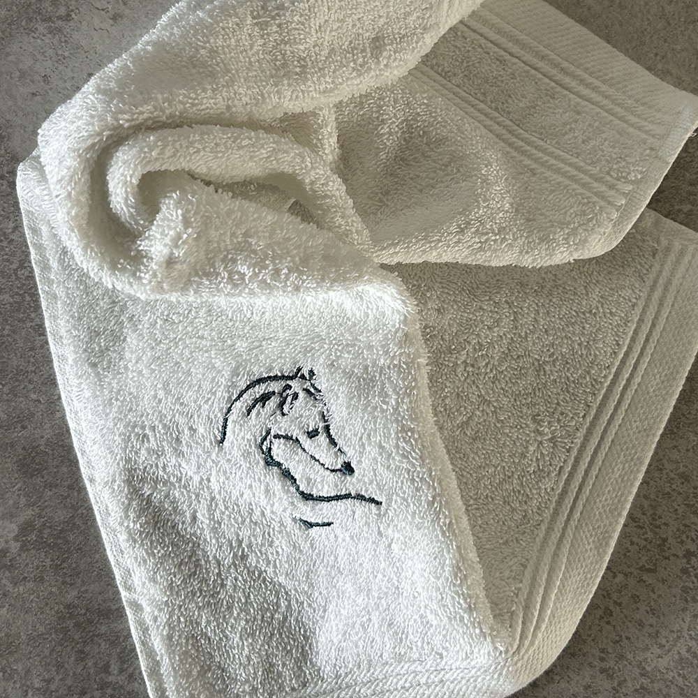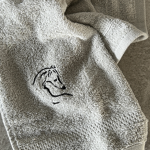 Lief gastendoekje met een geborduurde Whippet. Verschillende kleuren.