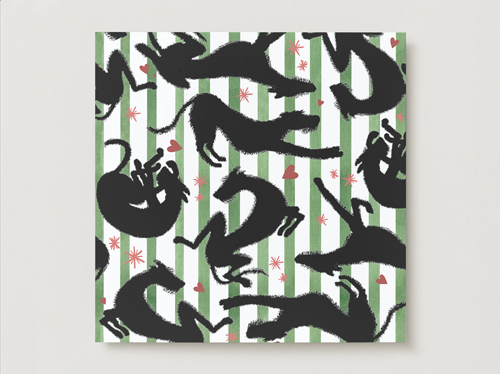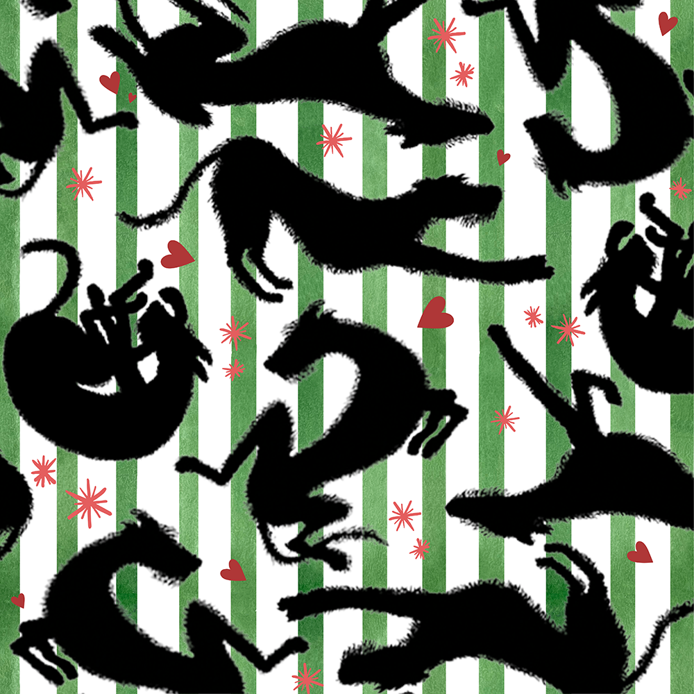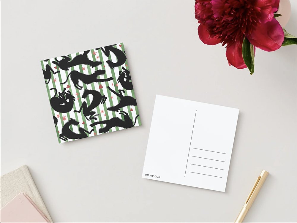 Christmas Card with fun Irish Wolfhound print, 13x13cm, 350gr/m2.