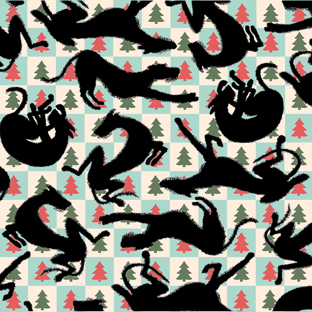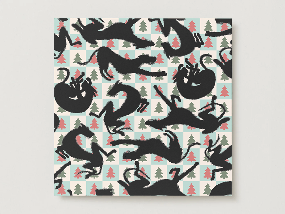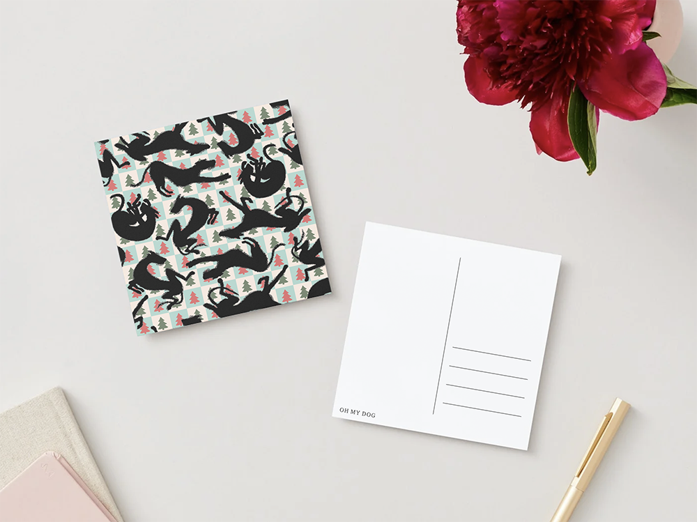 Christmas Card with fun Irish Wolfhound print, 13x13cm, 350gr/m2.
